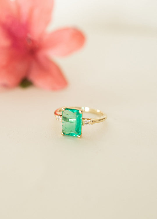 Este hermoso dije de esmeralda con halo de diamantes naturales es perfecto para darle un toque de color y elegancia...