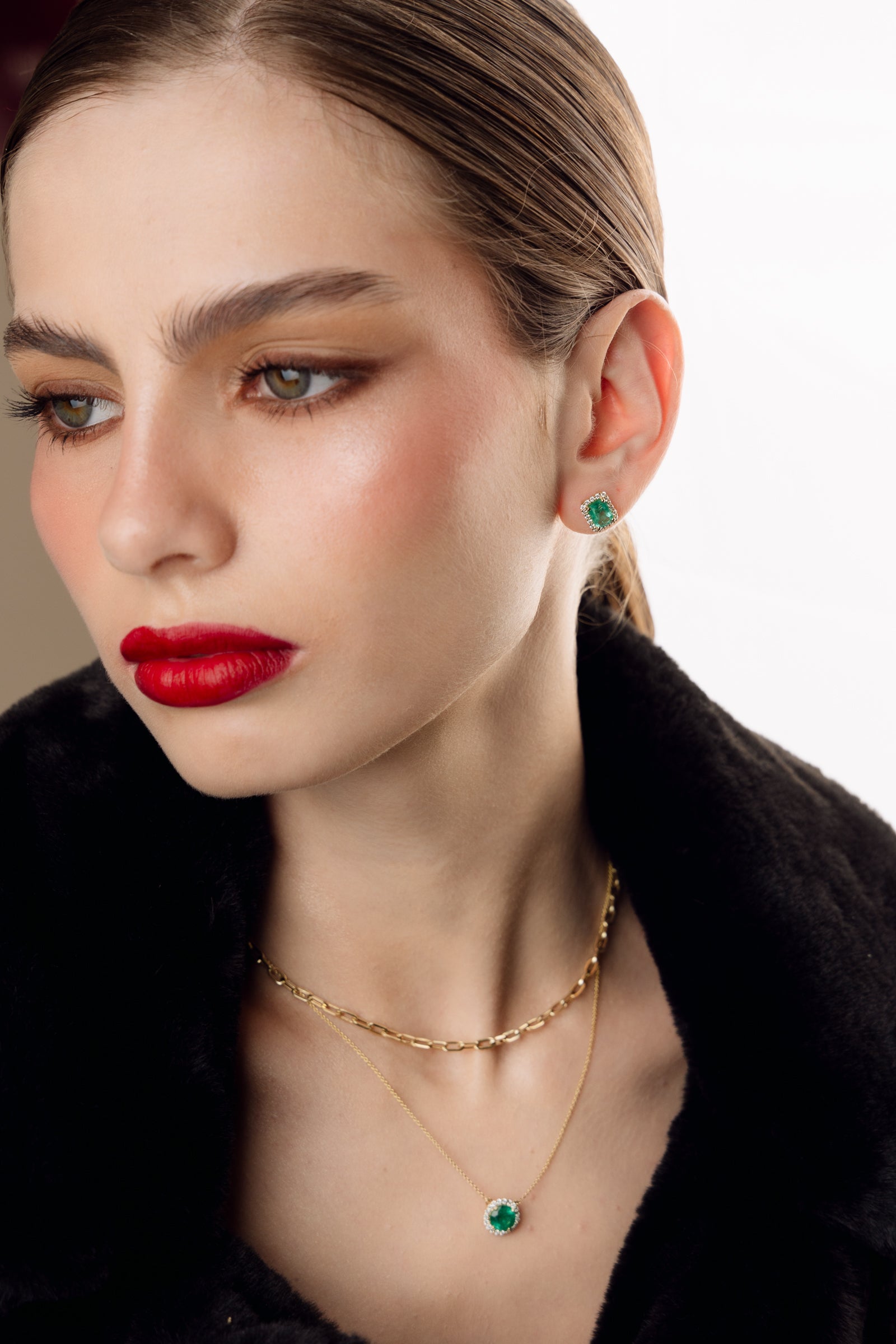 Este hermoso dije de esmeralda con halo de diamantes es perfecto para darle un toque de color y elegancia a tu look. Con su vibrante tono verde y diseño clásico es una pieza versátil que puedes usar a diario o en ocasiones especiales.