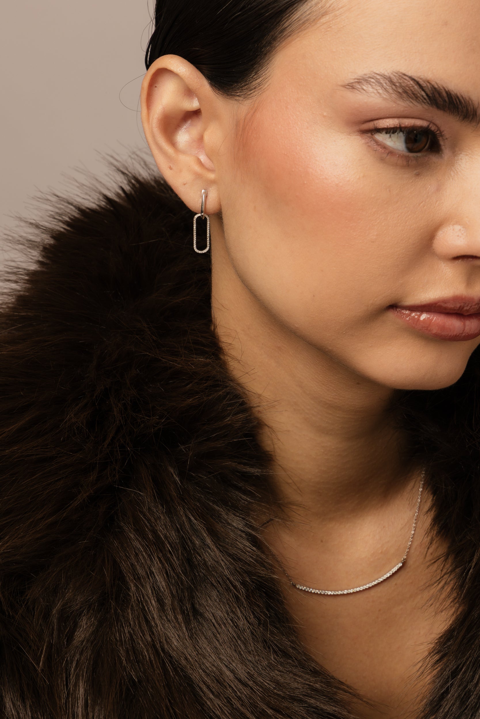 Aretes paperclip quita-pon diamantes 0.14ct 14k en blanco