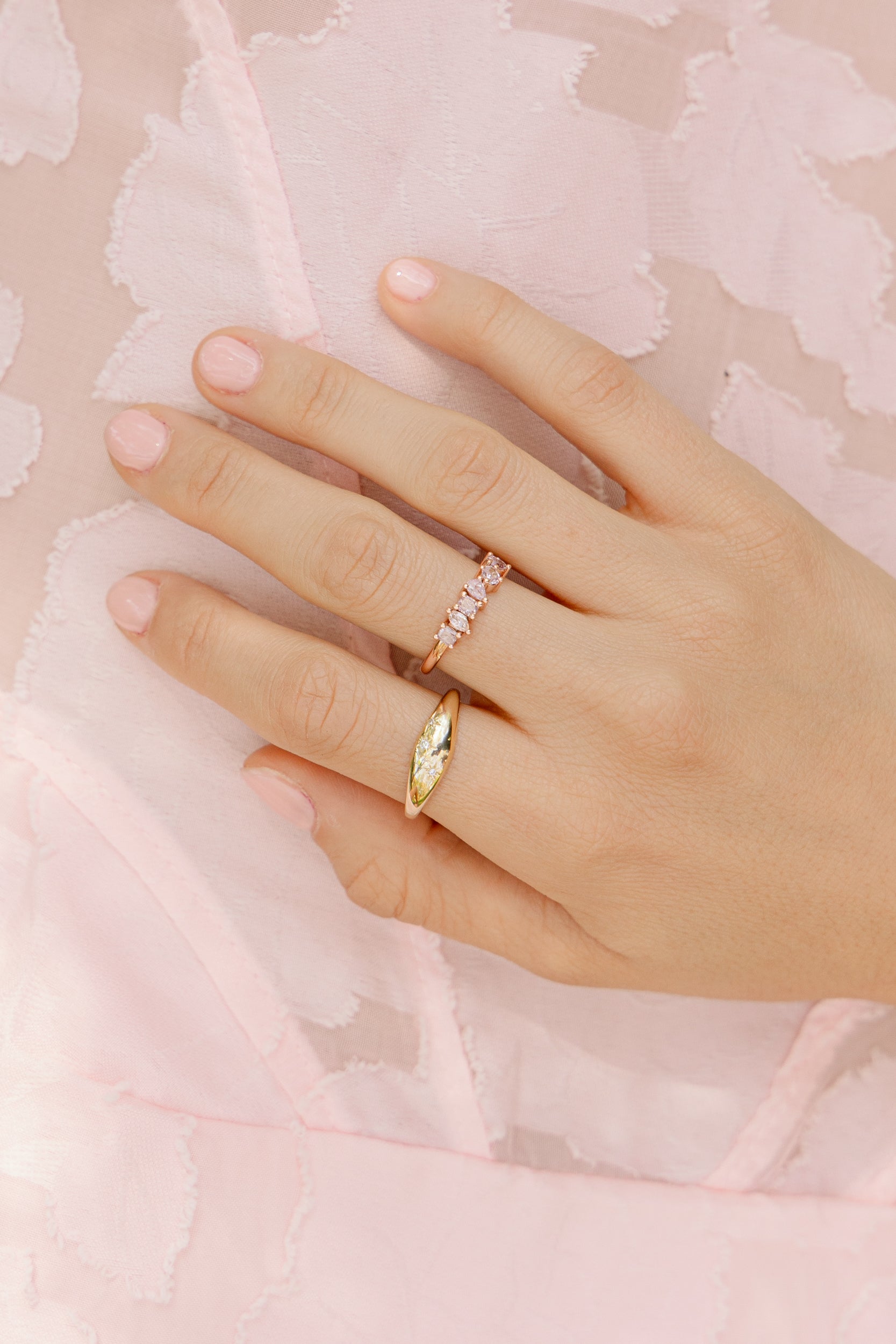 Una pieza que captura la magia y el brillo de las estrellas. Este anillo, elaborado en oro de 14 quilates, presenta diamantes engastados en un diseño de estrellas, creando un destello único con cada movimiento. Su estilo elegante y delicado lo convierte en una joya atemporal, perfecta para agregar un toque de glamour sutil y sofisticación a cualquier ocasión.